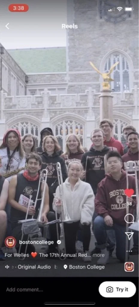 I'm from Ann Arbor, Michigan. This is going to sound a little weird, but I got mono my senior year of high school, so when I did college applications, I applied to three ED schools and was like "Ok, that's it. I'm not doing anything more. I'm so tired." BC was a really big win, but I knew nothing about BC. I'd never been to the East Coast—kind of scared me a little bit, not even going to lie, because I'm a little Midwestern boy—but I fell in love with the size, I fell in love with the [Bands] Program. Things that got me were the community here, the location [near] the city, and the level of university it is, but even after I applied and got in, I would start getting messages from the Marching Band. I started getting phone calls and emails like "Hey! I heard Michael got into BC. Congratulations. If you want to talk about considering Marching Band, let us know." Obviously, I feel bad because I knew the people calling me now in retrospect, but I was like "I'm not gonna call them back; that's scary." Having that constant reminder was like "Yeah, I can make this a home. I can make my mark here and make my place here."